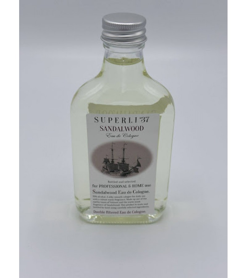 Sandelhout Eau de Cologne. 70% alcohol. Een zijdezachte cologne voor dagelijks gebruik met een frisse geur. Samengesteld uit de aardse tonen van Vetivert en de warme muskusgeur van sandelhout. Dit product wordt met de hand gemaakt en gebotteld.