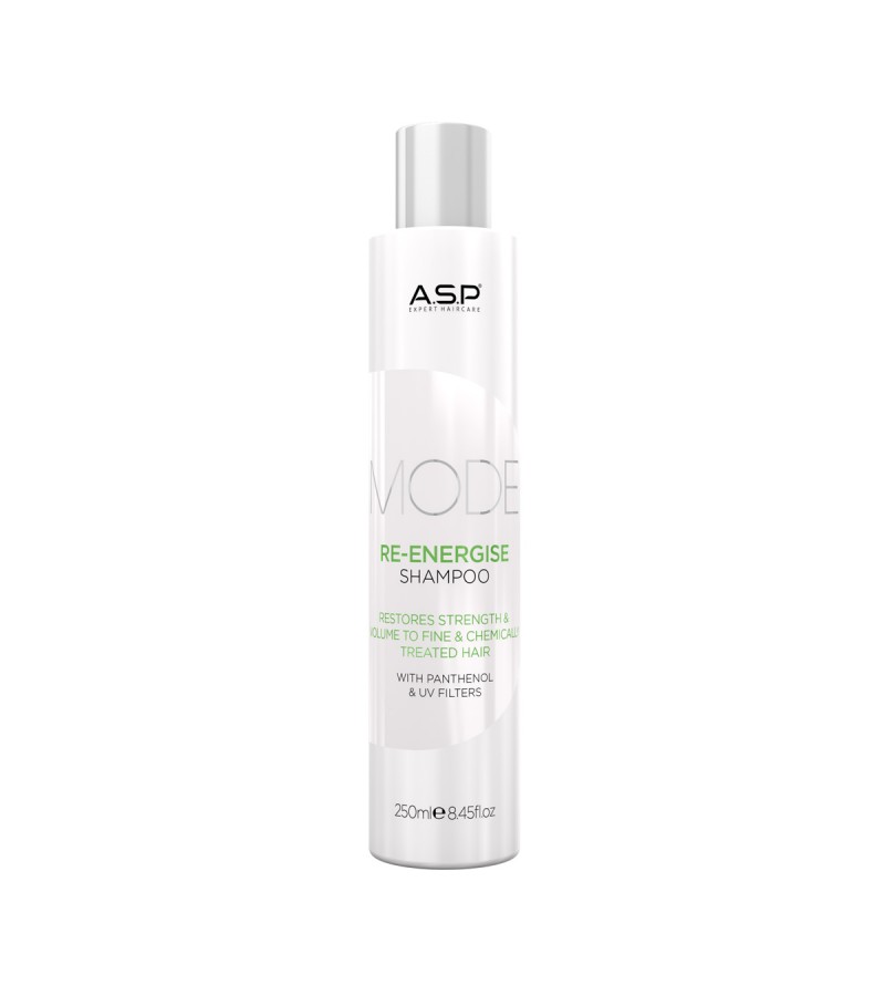 Geef futloos en vermoeid haar nieuwe energie met de ASP MODE Re-Energize Shampoo. Deze revitaliserende shampoo reinigt het haar grondig en mild, terwijl het de hoofdhuid stimuleert en het haar zichtbaar meer kracht en vitaliteit geeft.